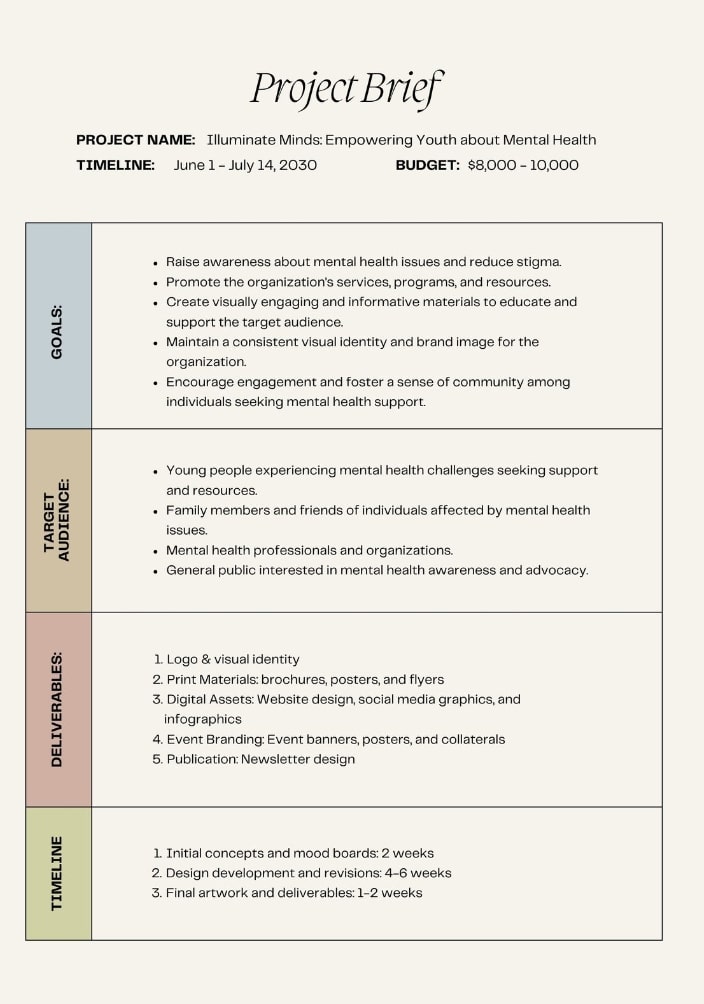 Obwohl diese Vorlage einfach und unkompliziert ist, eignet sie sich hervorragend für projektbasierte Updates. Mit Abschnitten für Ziele, Phasen und KPIs eignet sie sich perfekt für Marken mit mehreren Standorten, die Kampagnen regionsübergreifend verwalten. Es ist ideal, um über das Rebranding eines landesweiten Unternehmens zu berichten: Dieses Layout sorgt für einen übersichtlichen und übersichtlichen Ablauf.