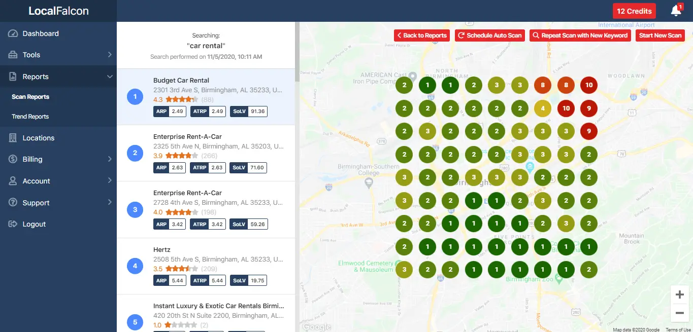 LocalFalcon is a tool designed especially for local analytics. It offers deep data integrations and great reporting capabilities for driving local insights at scale. However, the platform’s capabilities are only limited to analytics which may make it quite expensive for agencies/local brands at the price point.