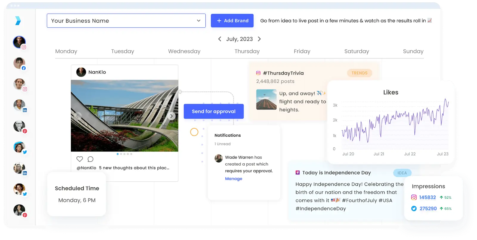 Helps streamline your operations by publishing calendars across various platforms such as Instagram, Facebook, Twitter, Linkedin