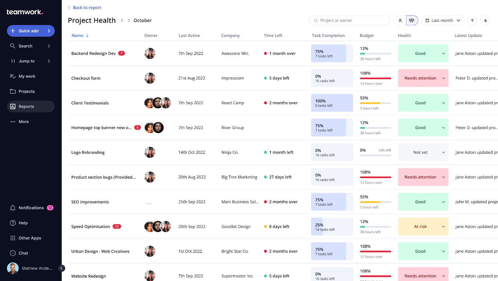 🏆 Project health insights: Client Pulse dashboard offers up-to-date view of client satisfaction (you can set your own unique criteria) and helps agencies identify which accounts are at risk to reduce churn.