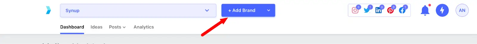 Once your dashboard is setup, you can connect your social media handles with Synup in just a few clicks. On the top you’ll see the option to “Add Brand” to your profile.