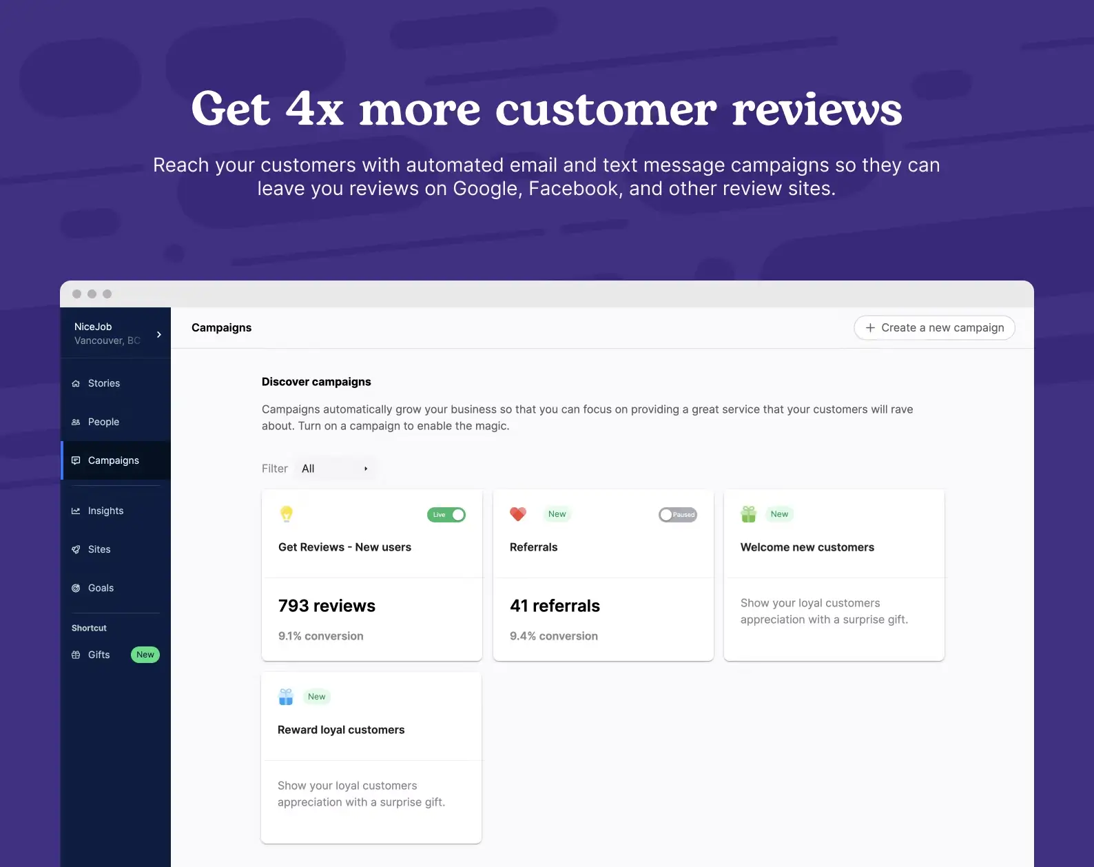 ✅ Integration with CRMs: Sync with over 100 CRM and POS systems to start review campaigns automatically.