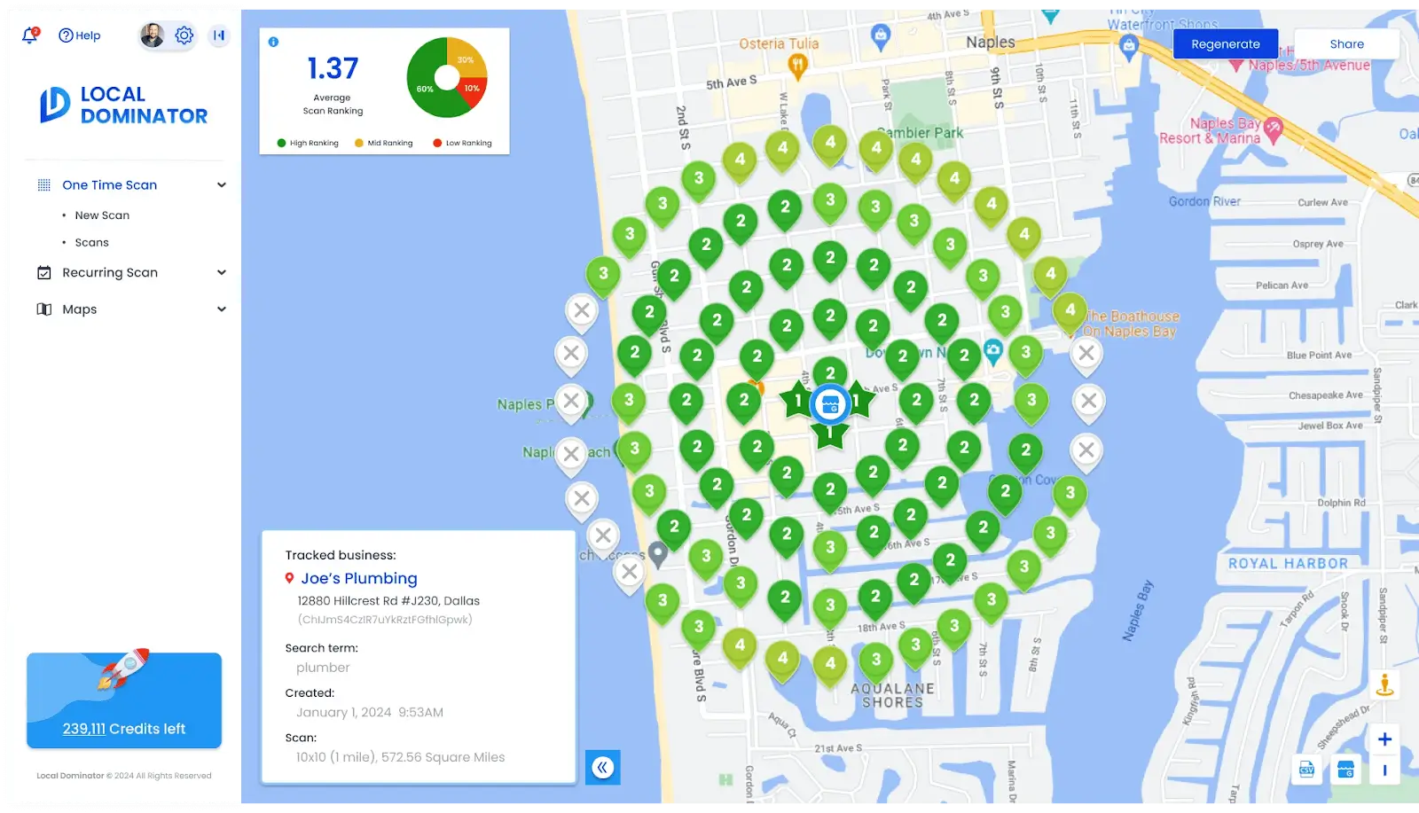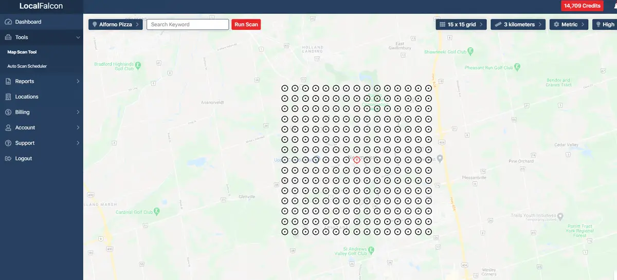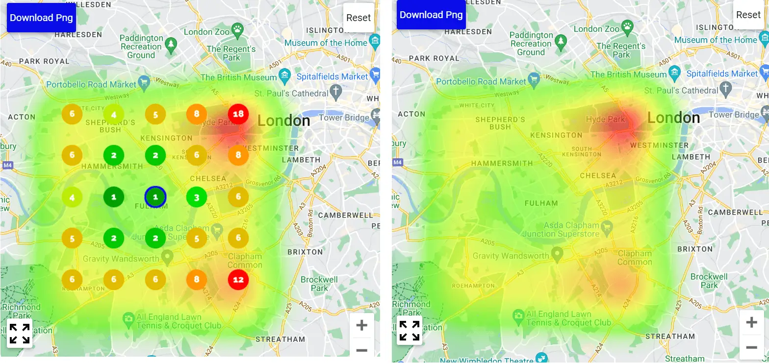 💎Provides detailed visibility into how a business ranks across different areas of a city or region.