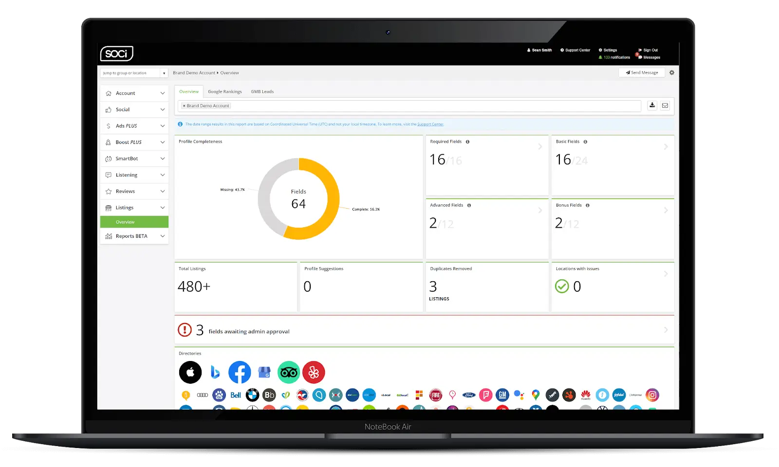 Sign up for a demo and we’ll get your account set up entirely. We let you connect your Google and Facebook business accounts in a few clicks. After that, you can sync your business info to all opted directories. To view and edit your business info, simply go to ‘Listings’ > ’Listings Overview’.