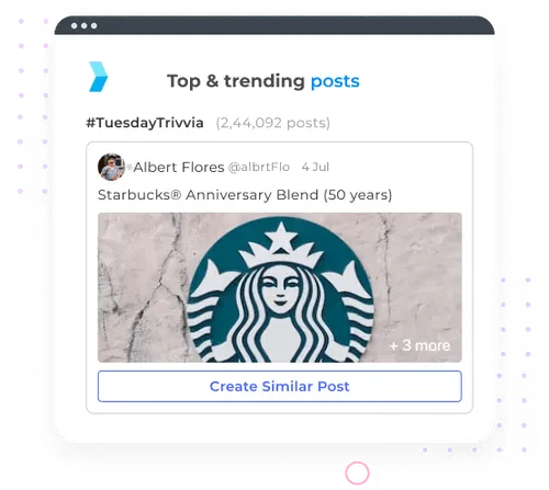 Our smart AI helps you create ready-to-publish, engaging posts, relevant to your brand and audience, using the trending content feed.