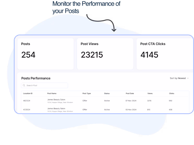 Our dashboard gives you a roll-up view of all posts on your business profile and performance. You can filter by a specific post or location ID.