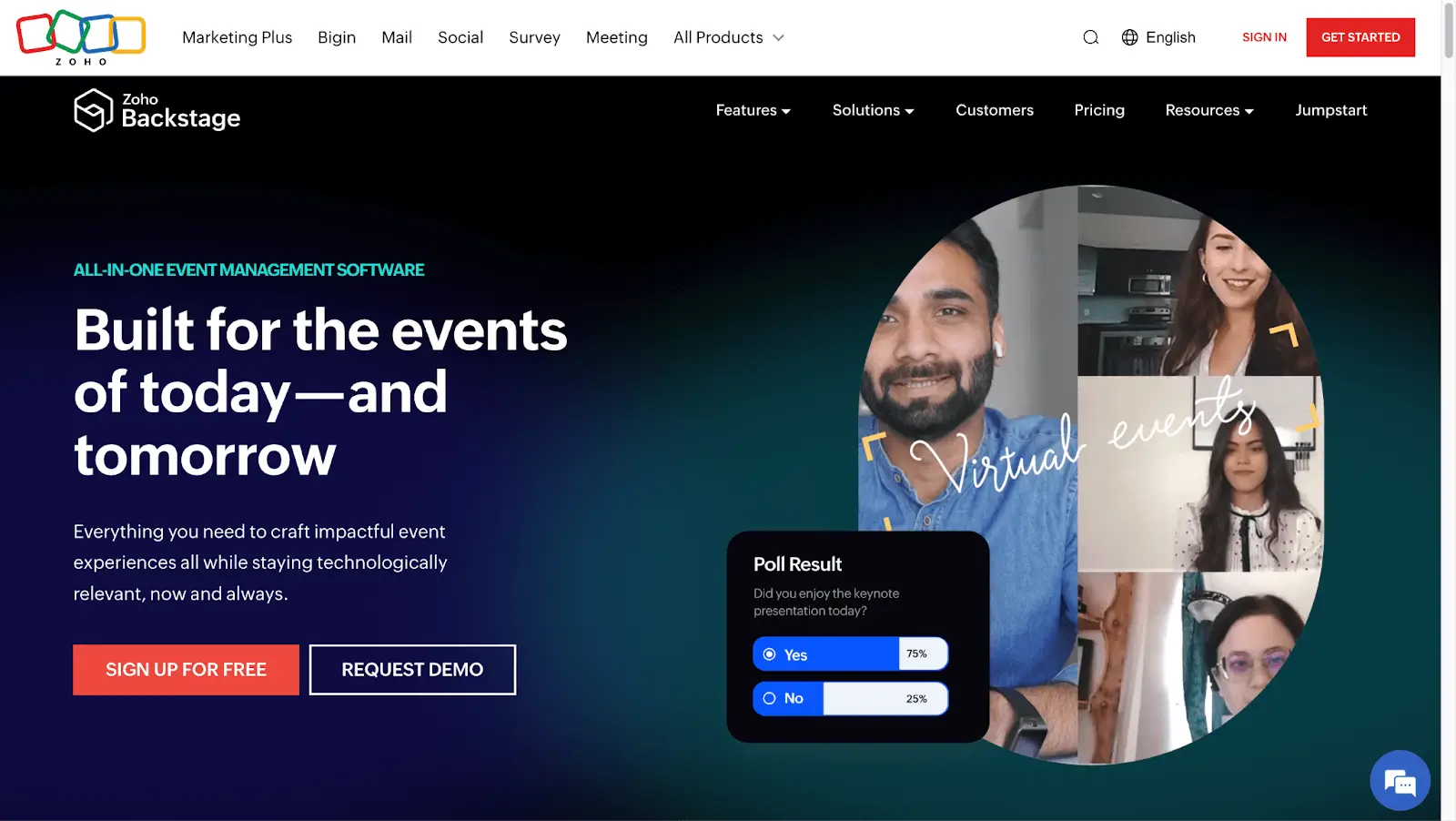 Zoho Backstage is a great option for planning conferences and large-scale events. You can build event websites, manage tickets, and create an agenda that attendees can access via a mobile app.