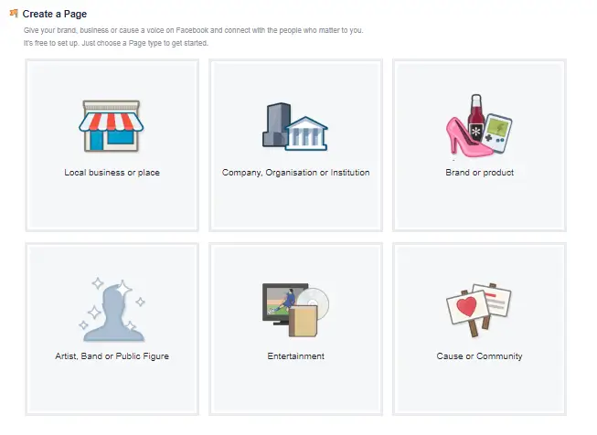 Step 2: Choose Your Facebook Page Type