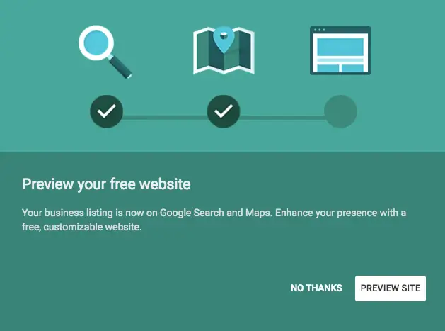 You’ll be getting a welcome message after that, saying that your business listing is now on Google search and Maps. You’ll also be asked whether you want to preview a site that you can create for your business using Google Sites. If you aren’t aware of what Google Sites is and how you can create a website with it, you can check this article out.