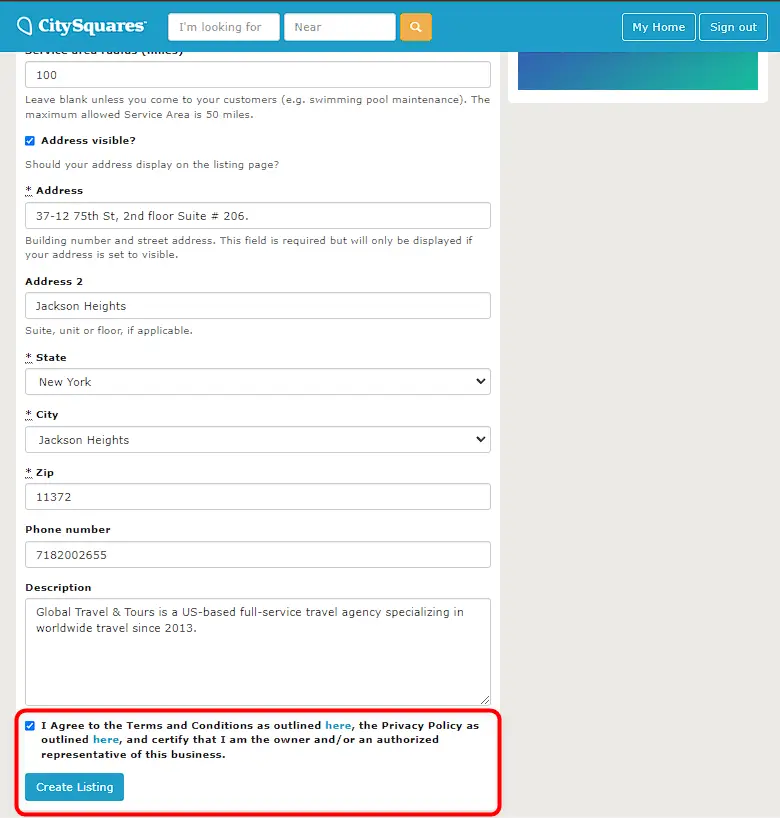 Step 9: Once your listing is approved, it will be visible on CitySquares and available for users to find when searching for businesses in your area.