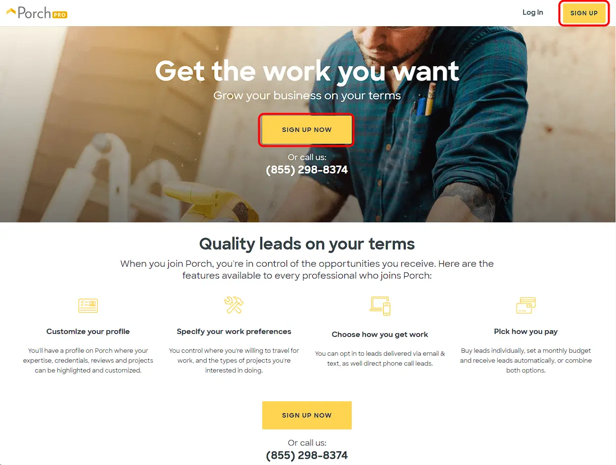 - Visit the Porch.com website and click on the "Join Our Pro Network" button located in the upper right corner of the screen.