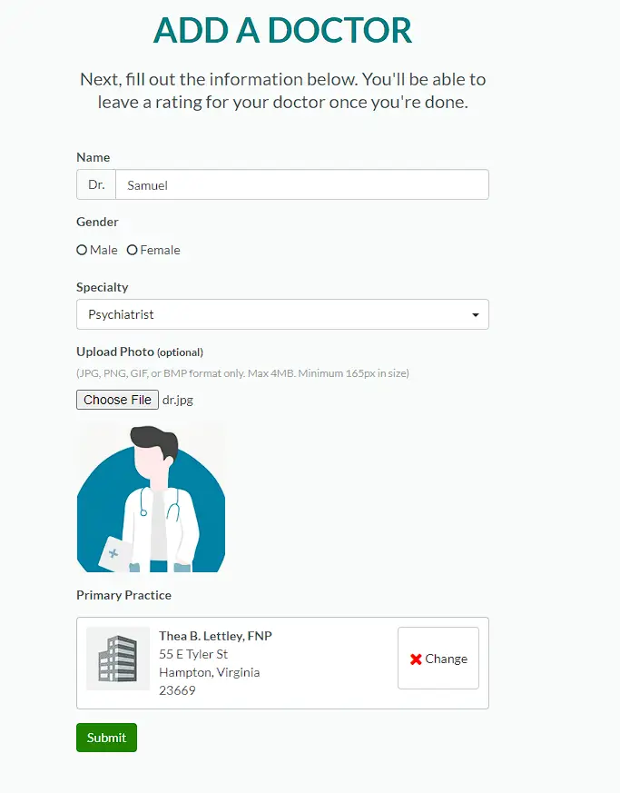 - Click on "Add a Doctor" or "Add a Dentist" button located at the top of the page.