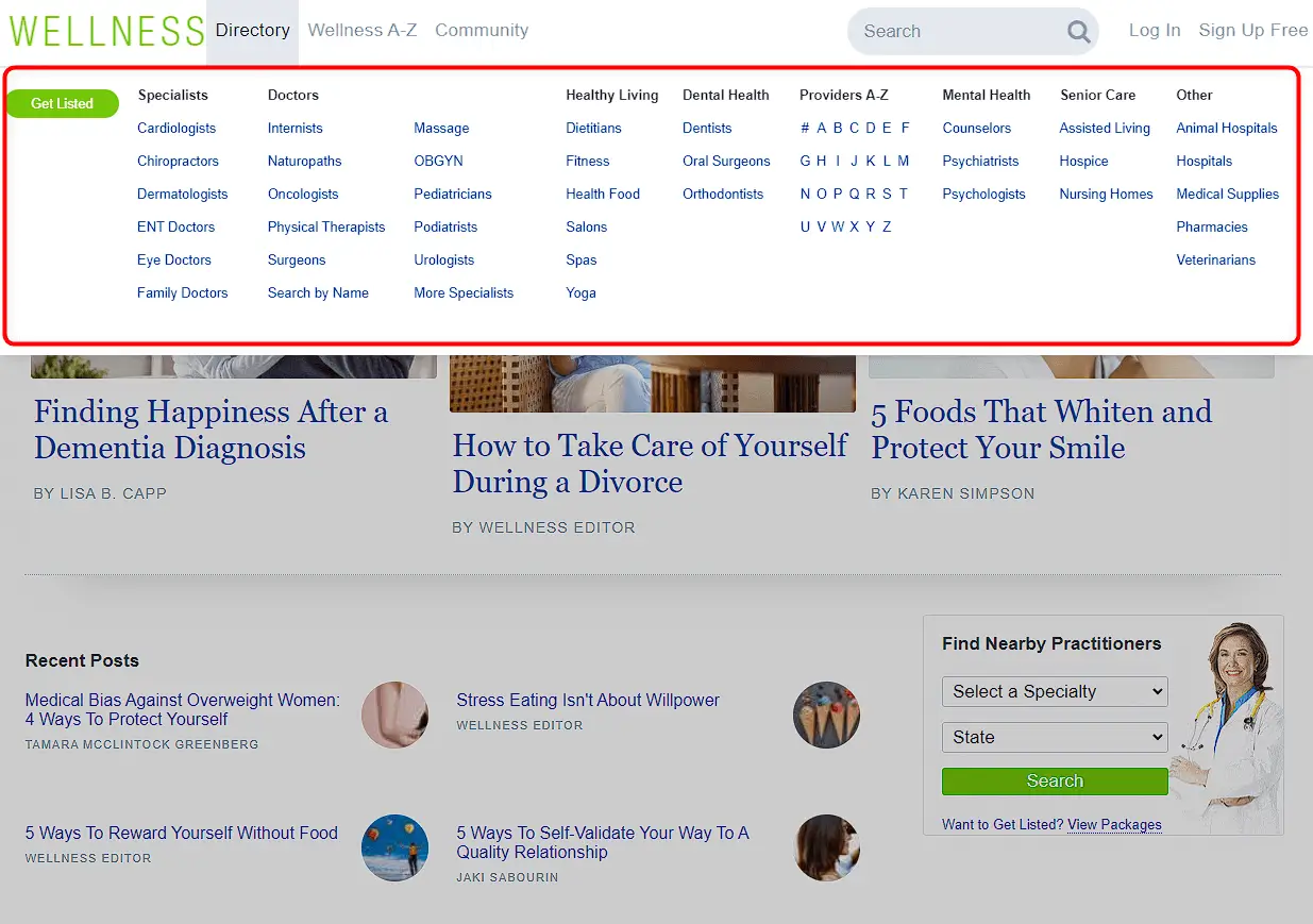 Wellness.com is an online directory of health and wellness professionals and businesses that aims to connect people with trusted practitioners. If you are a health and wellness practitioner or business looking to get listed on Wellness.com is the right place.
