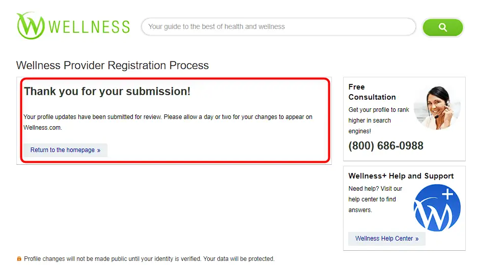 - Confirm your listing: Once you have completed your registration and paid for your membership, your listing will be submitted for approval. Wellness.com will review your listing to ensure that it meets their guidelines, and you will receive an email confirmation once your listing has been approved.