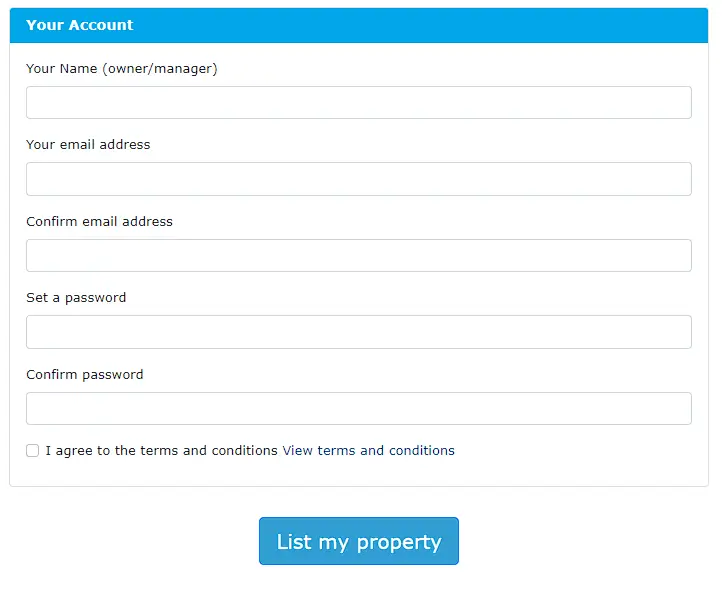 - Once all information is provided, click the “List your property” button under the your account section.