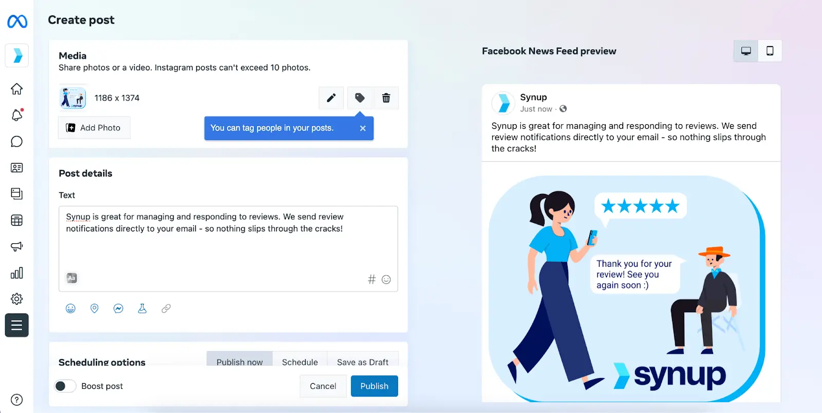 Creating posts with pictures helps draw your audience’s attention, driving engagement and increasing interactions. Try adding a photo to your Meta Business Suite posts today!