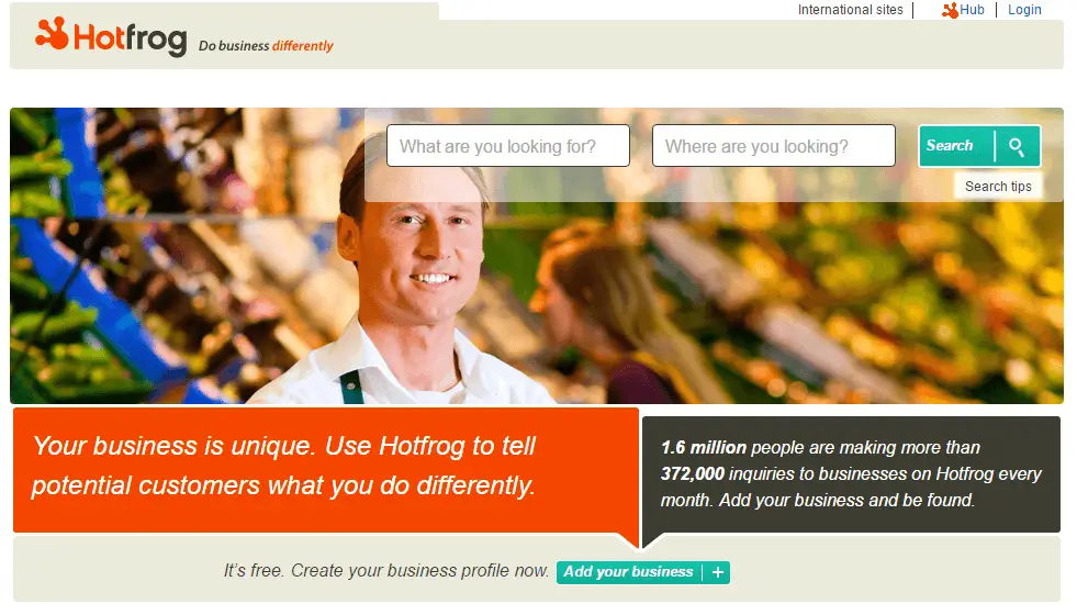 Go to Hotfrog’s homepage and click on “Add your Business” to create your business profile.