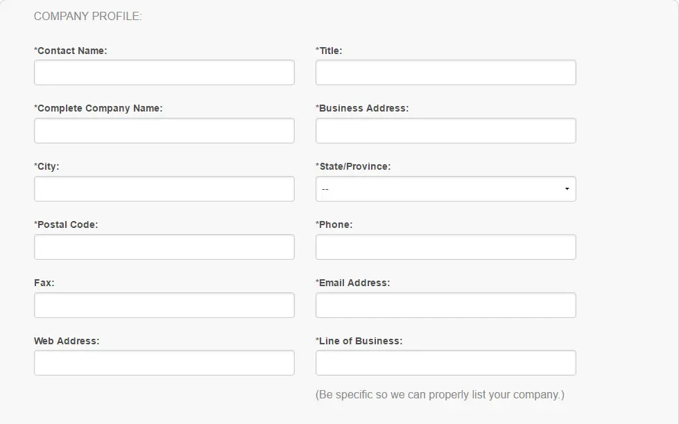 To qualify for a free listing on the Blue Book, you will have to furnish some information about your company including contact number, website, address and the line of business.Please note that you will also have to select the areas in which you do business.