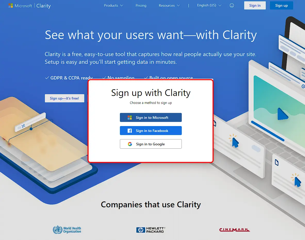 - Go to the Microsoft Clarity website (https://clarity.microsoft.com).
