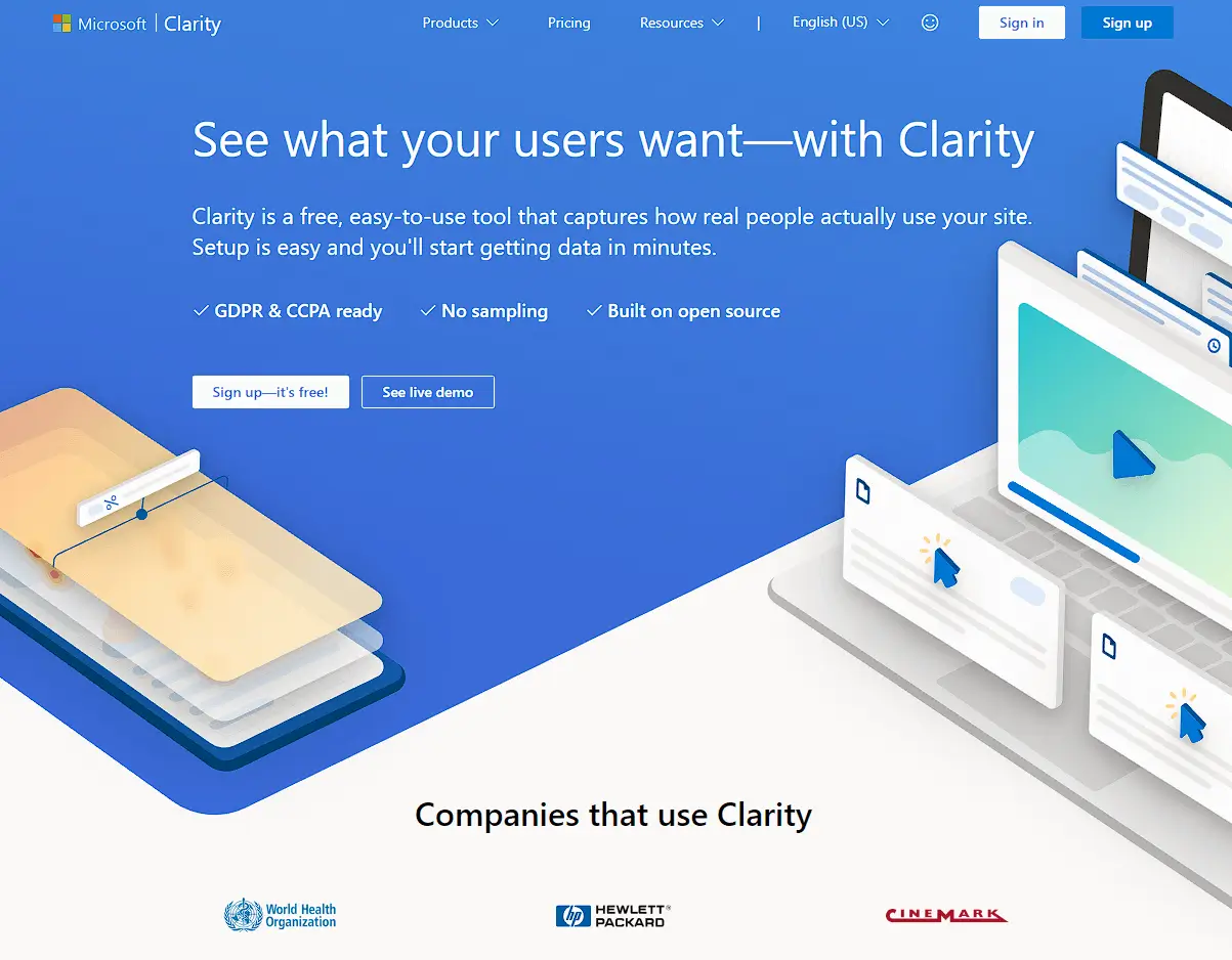 Microsoft Clarity is a free application that assists marketers and website owners in evaluating user behavioral on webpages. It provides information and insights, like heatmaps and session records which helps website administrators to improve user experience. Microsoft Clarity is a powerful and user-friendly application for website owners that can be easily installed on any website.