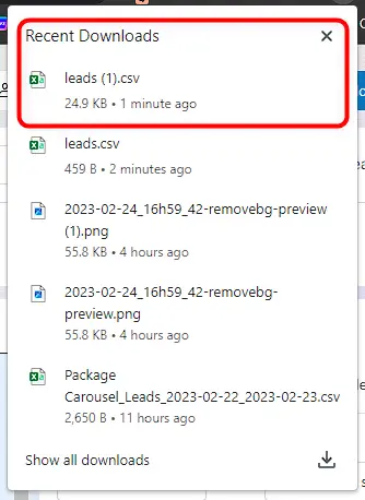 Step 8. Your leads will now be downloaded to your computer as a CSV or XLS file, depending on the format you selected.
