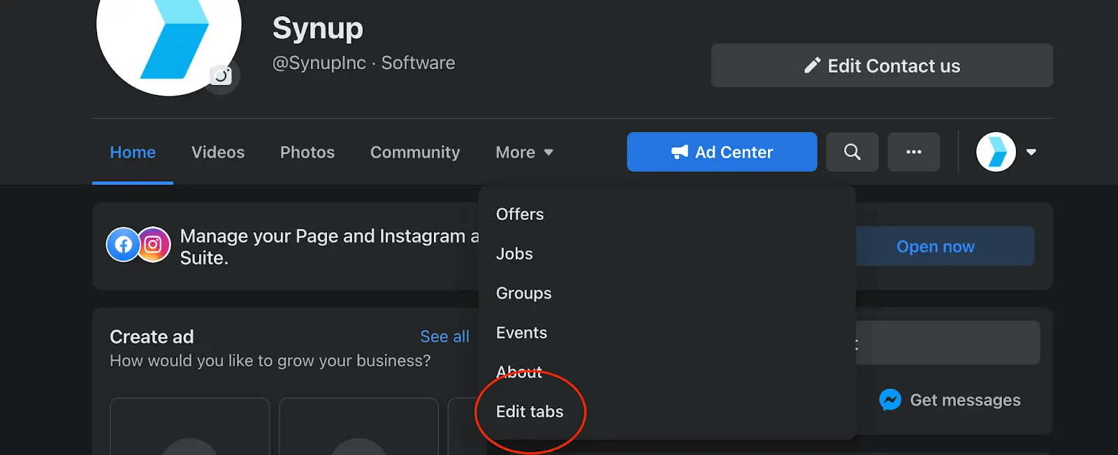 - Adjust your page tabs to best showcase your business. Hide any sections that are irrelevant to your company, and highlight those that you want customers to have access to. Click the “More” button on your tab banner and then “Edit tabs” to change it up.