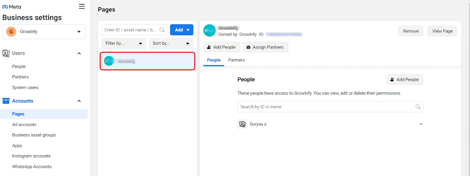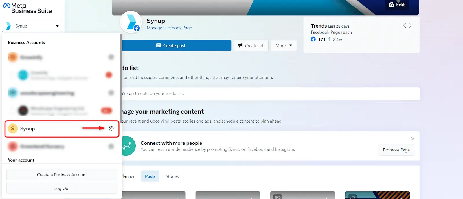Step 5: Select your “Business Page” next to the Meta Business Suite app.