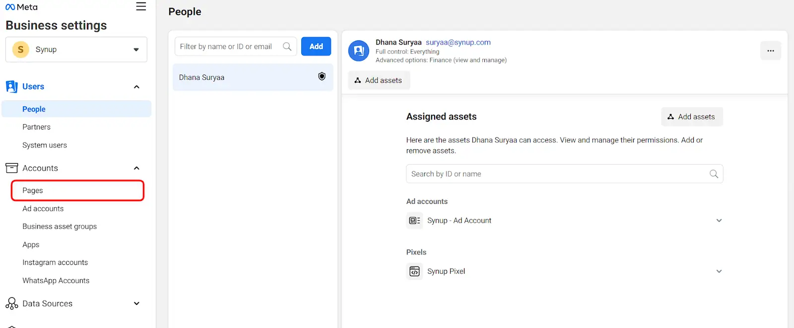 Step 4: Navigate to the Accounts tab and find “Pages”