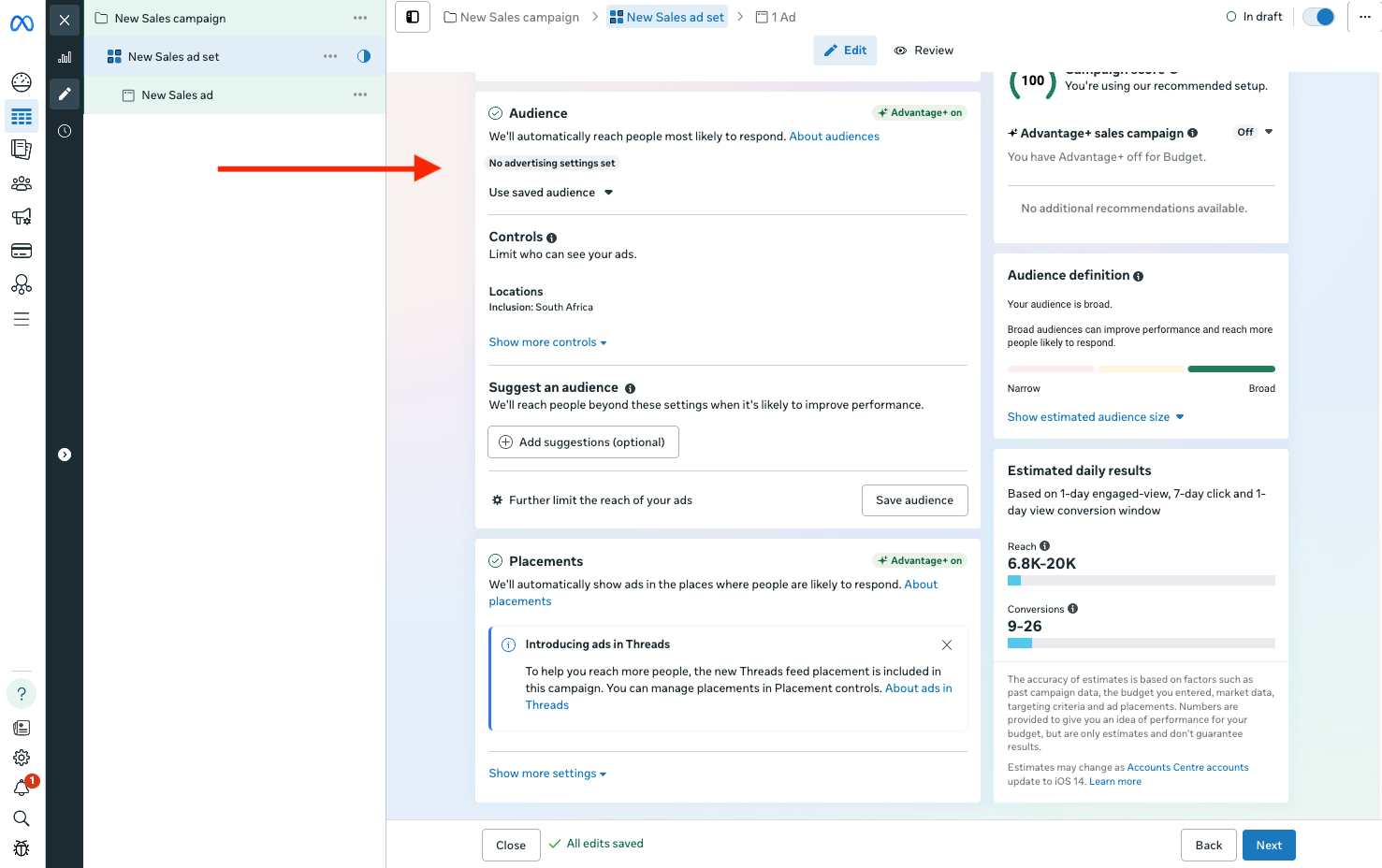 - At the ad set level, drop a location pin around your local business.