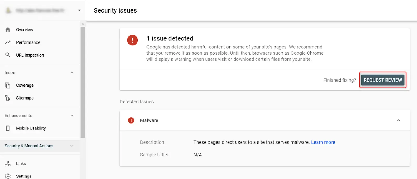 - Once you have taken the necessary actions to fix the security issues, go back to the Security Issues report in Google Search Console. Request a review by clicking on the "Request Review" button next to each resolved issue. This notifies Google that you have addressed the problem and helps expedite the removal of any warnings associated with your website.