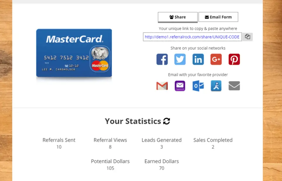 - Use social buttons to make it easy for your customers to share your referral/rewards program