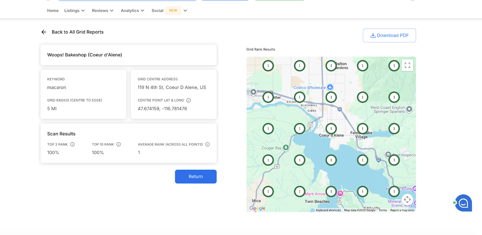 Run grid scans monthly to detect ranking shifts. Did a new competitor open 2 miles away and crater your visibility in that zone? Did a major review influx boost your suburban rankings? Grid tracking catches these changes that single-point rank checkers miss entirely.