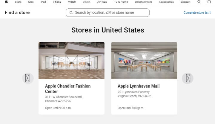 Example: Apple includes interior shots of its stores, so customers know if they’re walking into a full retail space or a service center.