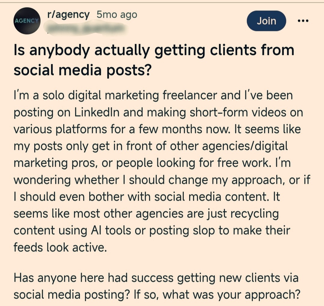 Practice what you preach. If a prospect looks you up and sees your last post was from 2023, they will immediately disqualify you. If you can't grow your own brand, how can they trust you with theirs?