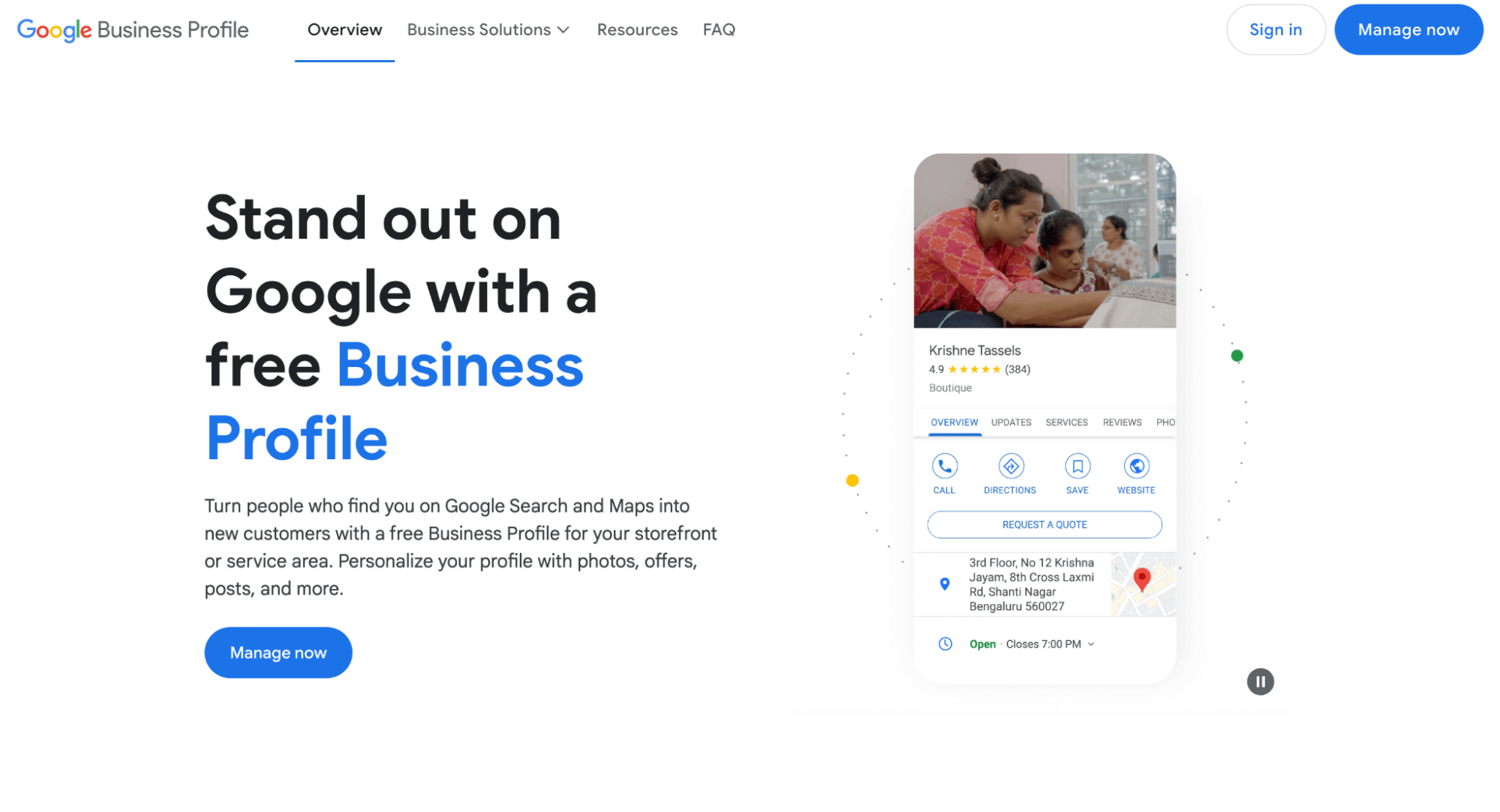 A well-optimized Google Business Profile (GBP) ensures that potential guests have all the information they need to choose your hotel. To add details about your business, go on the Google Business Profile Site and sign in.