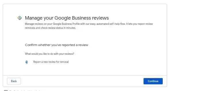 - Google will ask you what you would like to do with your reviews. Click ‘Report a New Review for Removal.’