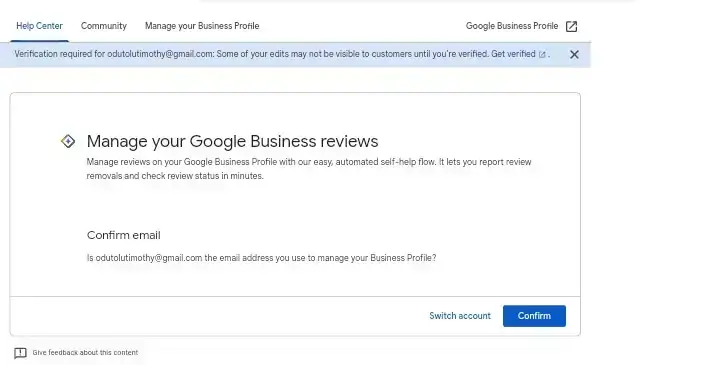 - Make sure your email address is correct. Google will need it to follow up. If it is, hit ‘Confirm.’