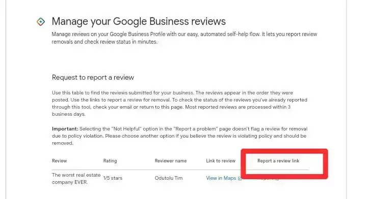 Once you’ve done all of the above, Google will receive your request to investigate the review.