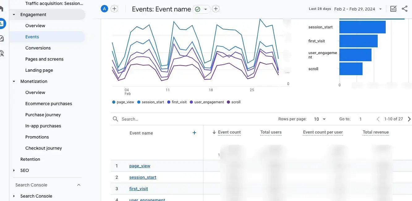 If you want to track other conversion metrics, GA allows you to create ‘events’ for your website. You can track metrics like total events, events per user, conversion rate, etc in the acquisition and engagement reports in GA4.