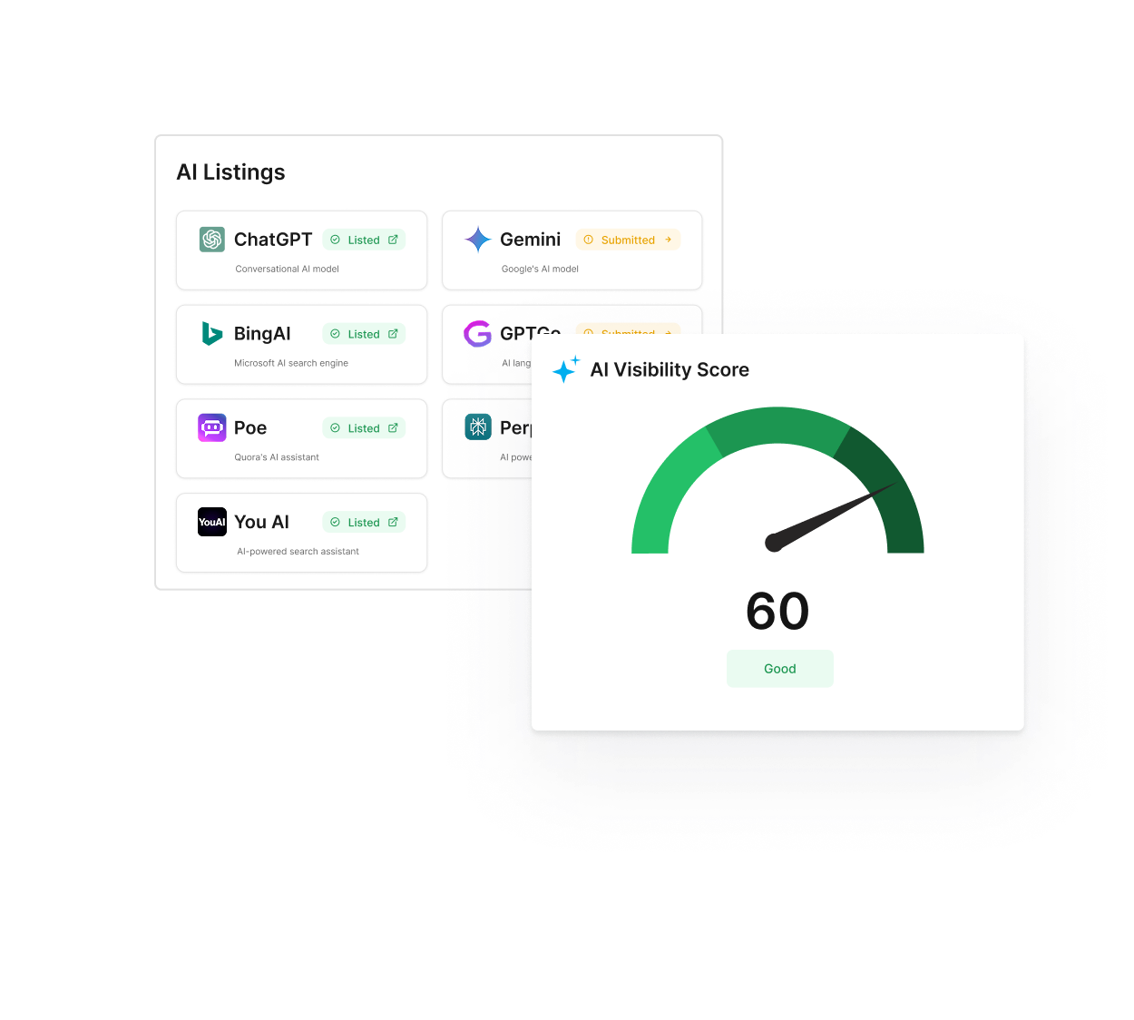 Help your clients stay competitive by ensuring their business is easily discoverable via AI. Provide accurate, accessible information and build their reputation on the fastest-growing search engines.