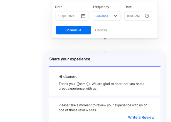 Get your clients more authentic reviews by running email and SMS campaigns.