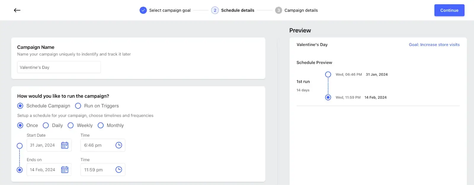 You can choose between campaign goals to help measure your success! You can either choose to increase phone calls, store visits, or website visits.