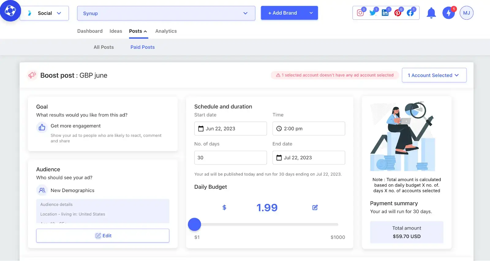 After you use Synup Social’s revolutionary post creator to craft the perfect post, there’s almost nothing you can do but send it out into the world. Whether you’re hoping to hit a larger audience or promote something in particular, boosting your social posts is a great way to “boost” your growth and ensure your post performs!