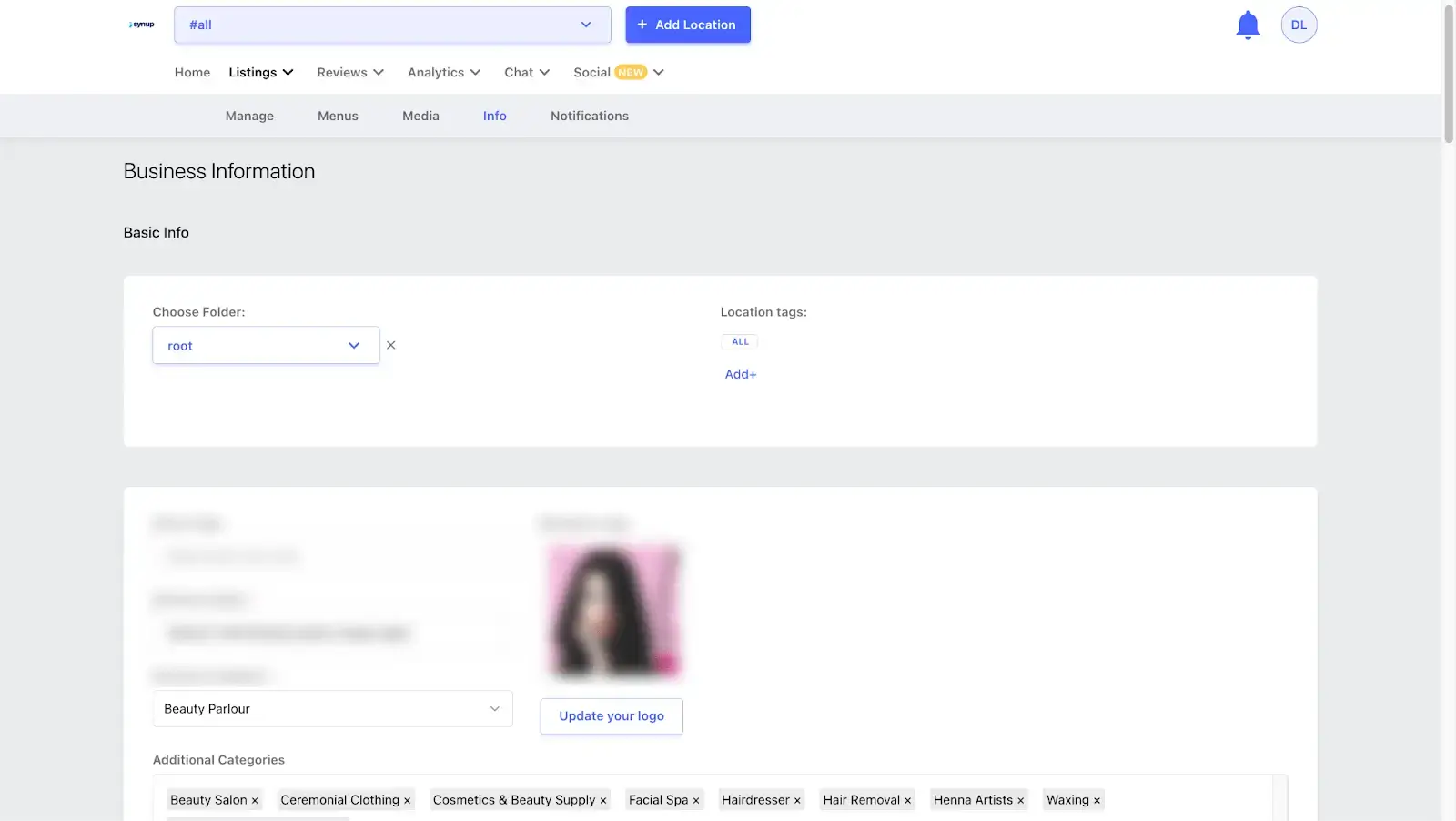 Once you click on Edit Locations, you will be redirected to a page where all your basic business information is listed, such as your name, address, phone number, business category, any additional business information, more business categories, etc.