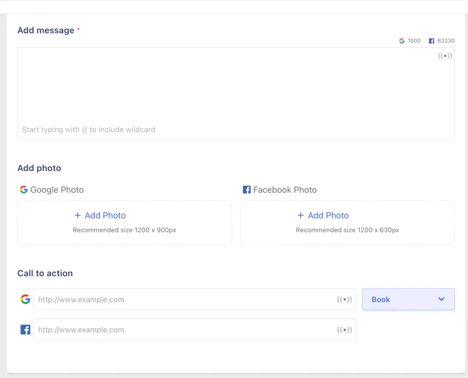 Step 4: Add content for the post along with photo and CTA link. You can select from a few preset CTA buttons
