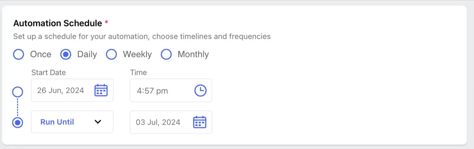 Step 4: Scroll down and set the timeline when you want to run the post. You can also add a relevant photo and CTA link to the post.