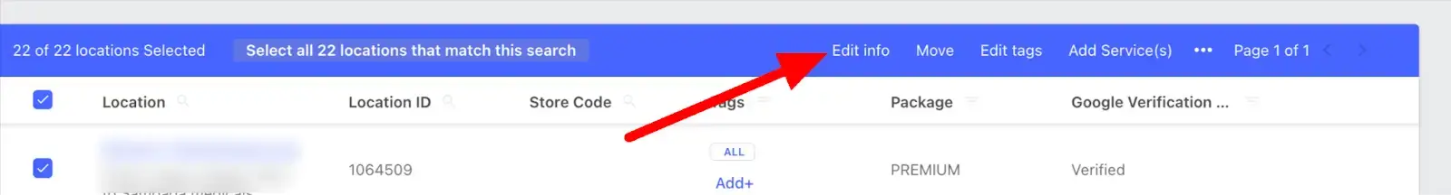 Step 2: You’ll see the list of all your locations. Select one or all locations for which you want to manage Google profiles and click ‘Edit Info’.