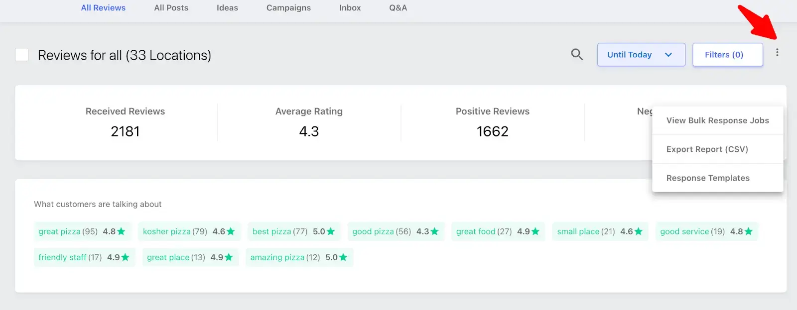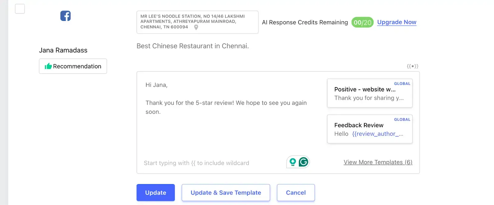 Step 5: To view response templates and use one as a reply to your reviews, click on the three dots in the upper right corner and select “Response Templates.” You will be redirected to a page where you can find various templates and use them as needed.