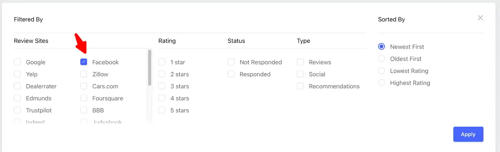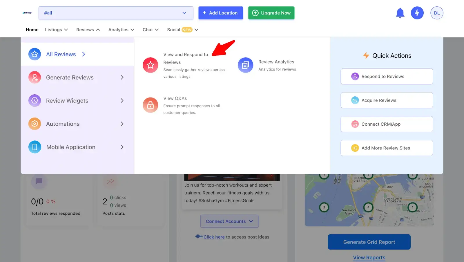Step 3: Click on "View and Respond to Reviews" to see all your reviews in one place. For Facebook reviews, simply apply the filter to focus specifically on them.