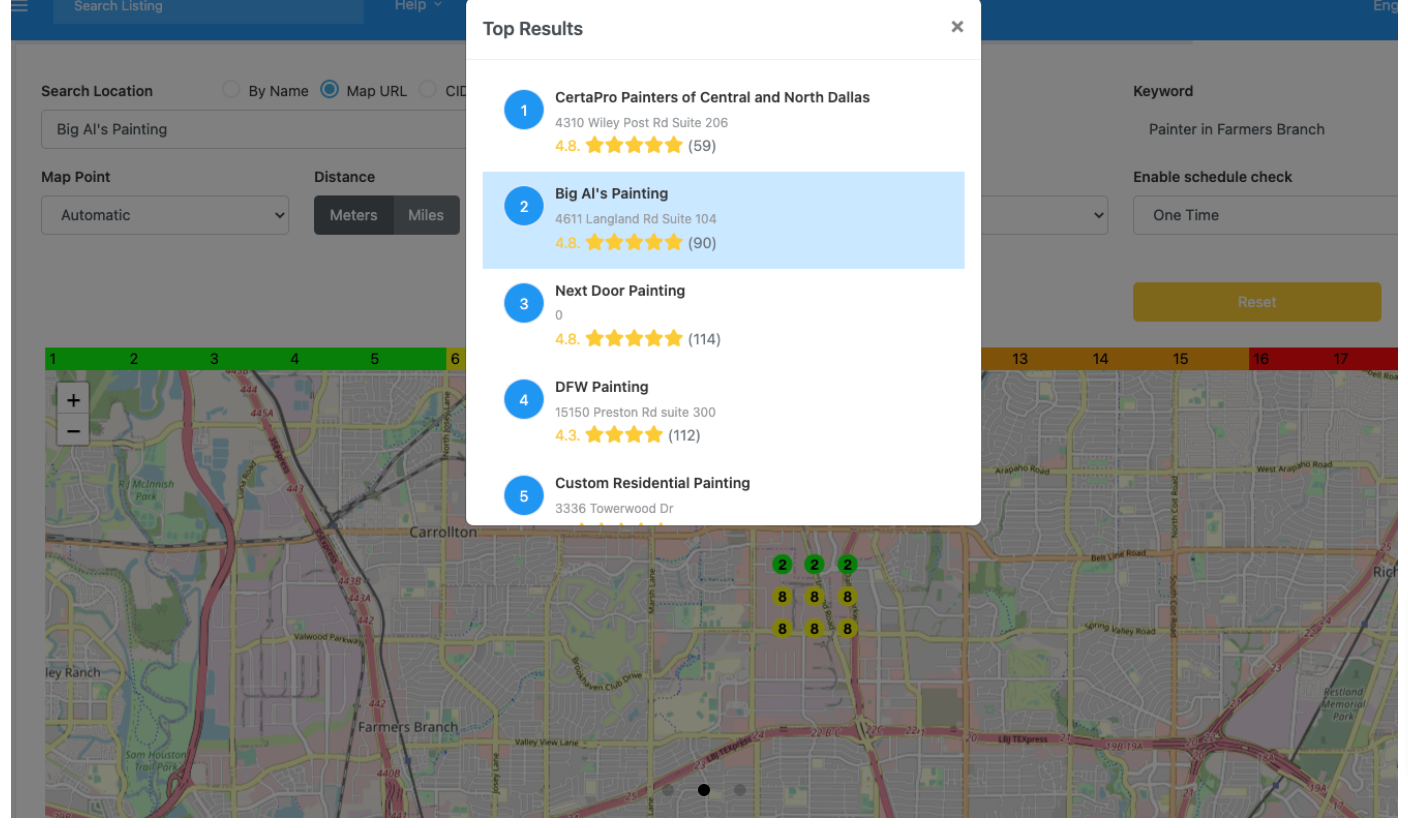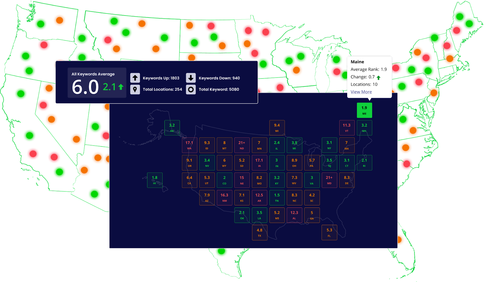 Acceda a clasificaciones granulares de palabras clave para ubicaciones específicas, mapeadas directamente en Google para obtener la máxima transparencia en su presencia de búsqueda hiperlocal.